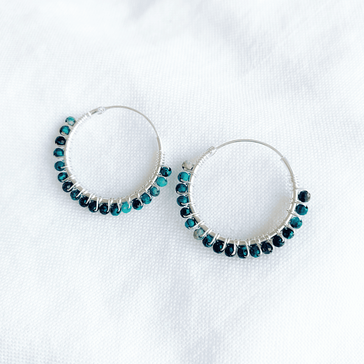 Argollas diámetro 23 mm. con bolitas de piedras naturales (2 mm).
